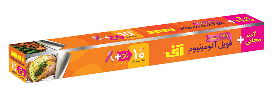 فویل آلومینیوم 14+- میکرون آنی، بهترین وسیله برای پوشاندن مواد غذایی، پختن شیرینی و غذا در فر و کباب کردن، برای محافظت از بو، هوا و رطوبت خارجی، مناسب برای تمیز نگهداشتن فر و اجاقگاز